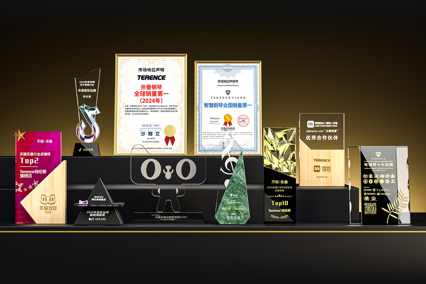 特倫斯創(chuàng)新科技榮獲:折疊鋼琴全球銷量第一(2024年)[1]、智慧鋼琴全國(guó)銷量第一[2]、2022年天貓樂(lè)器行業(yè)TOP1、2023年天貓618樂(lè)器行業(yè)TOP1、2024抖音電商年度新銳品牌、2024天貓樂(lè)器店鋪TOP2、2024天貓年度新品牌新銳領(lǐng)航獎(jiǎng)、2023年京東最受用戶喜愛(ài)品牌等獎(jiǎng)項(xiàng);